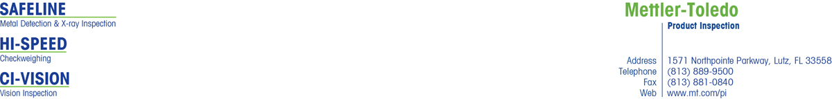 The Product Inspection division of METTLER TOLEDO is one of the leading providers within the field of automated inspection technology. The division includes the following brands: Safeline metal detection and X-ray inspection, Garvens and Hi-Speed checkweighers, and CI-Vision machine vision systems. The product inspection solutions improve manufacturers’ process efficiency and help them comply with industry standards and regulations. METTLER TOLEDO systems ensure consistently higher product quality, helping protect both consumers as well as the reputation of manufacturers and their products and brands.